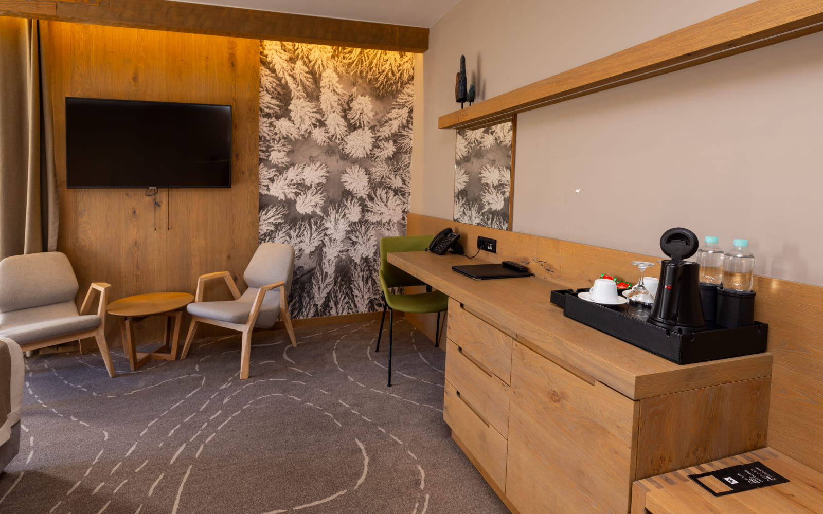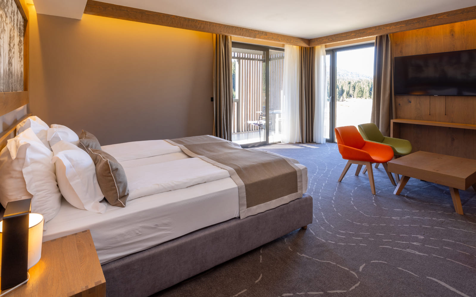 Naši Junior apartmani, površine najmanje 30m², pružaju savršenu ravnotežu između elegancije i topline planinskog ambijenta. Udoban bračni krevet i udobna zona za sjedenje stvaraju osjećaj doma, dok pažljivo odabrani detalji unose šarm i čine atmosferu posebno ugodnom.